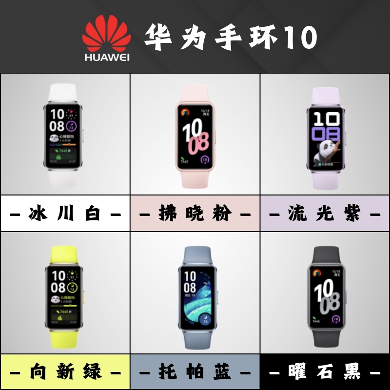 华为手环 10 - 冰川白 / 拂晓粉 / 流光紫 / 向新绿 / 托帕蓝 / 曜石黑